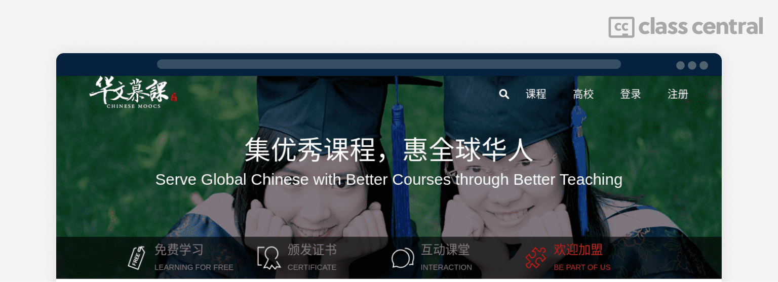 यहां चीनी ऑनलाइन पाठ्यक्रम प्लेटफॉर्म हैं जो एमओओसी पर ध्यान केंद्रित करते हैं। आप विवरण पर सीधे जाने के लिए एक पर क्लिक कर सकते हैं।