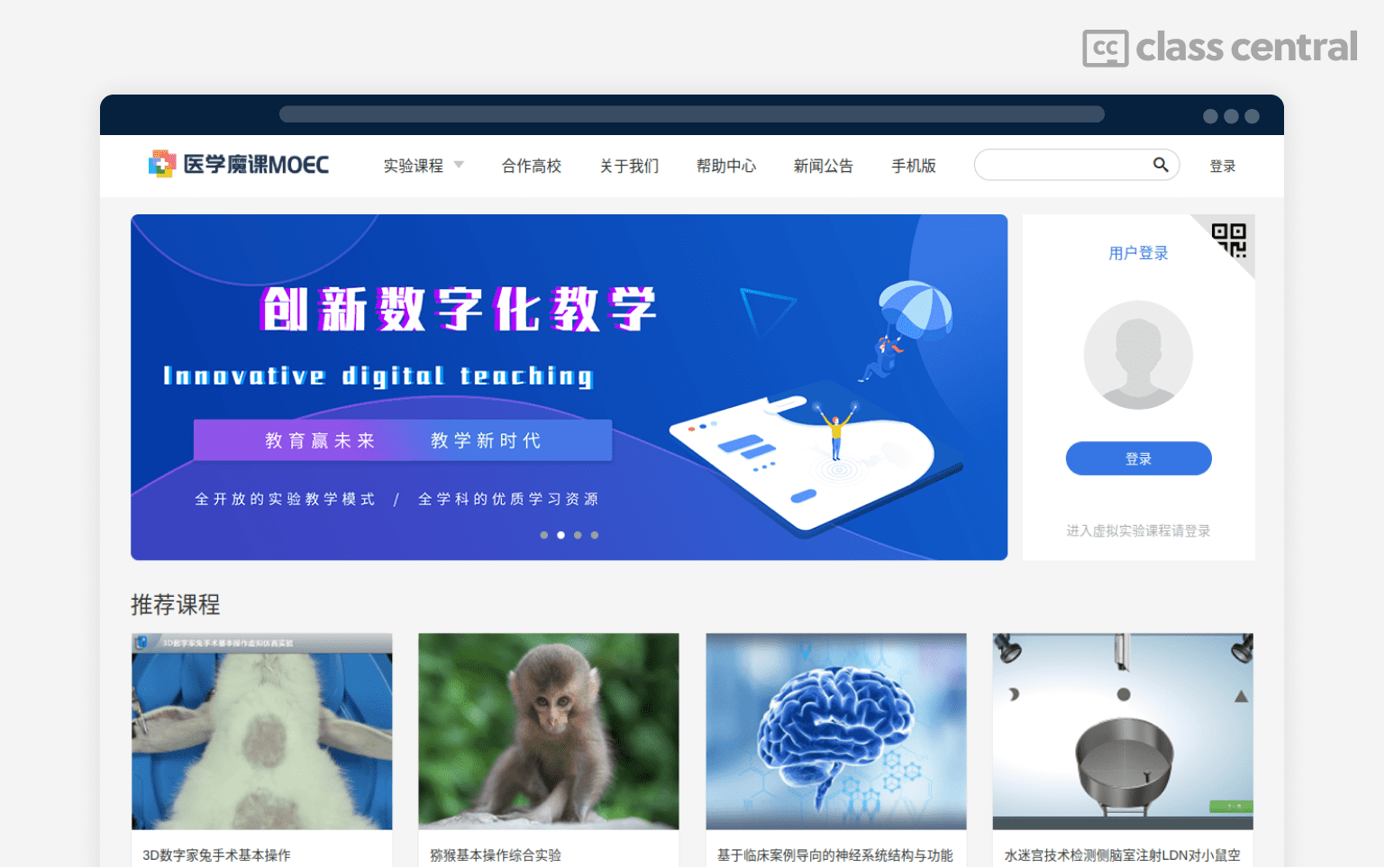 एमओईसी मेडिसिन में वर्चुअल सिमुलेशन प्रयोग शिक्षा के लिए एक एमओओसी प्लेटफॉर्म है, जिसे कंपनी मेंगू ने 2020 में लॉन्च किया था। एमओओसी प्लेटफॉर्म ने चीन में 100 से अधिक यूनिवर्सिटी मेडिकल स्कूलों के लिए मेडिसिन में लगभग 720 पाठ्यक्रम प्रदान किए हैं।