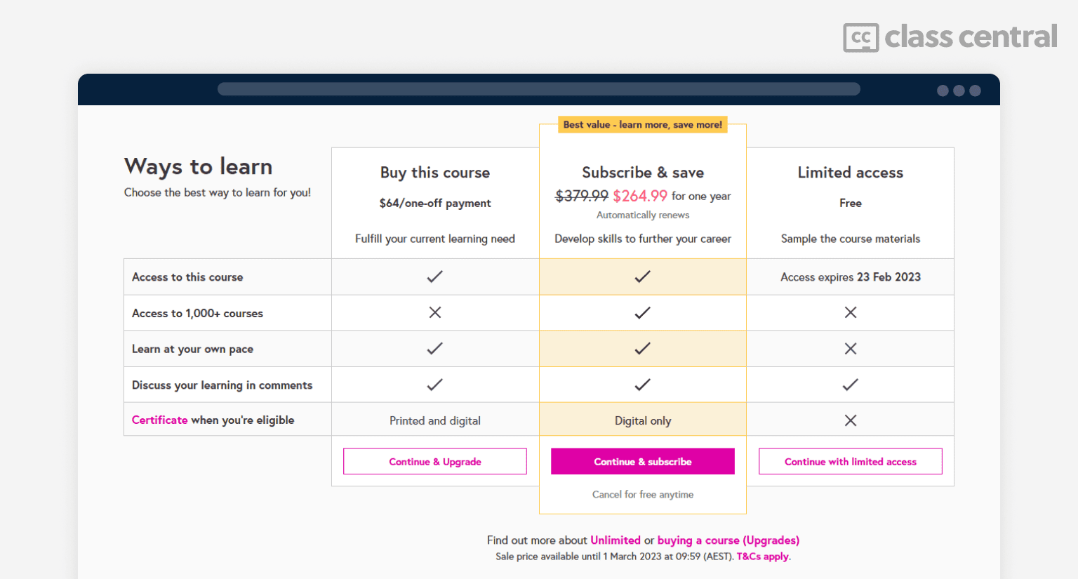 जब मैंने दूसरे सप्ताह तक पहुंचने की कोशिश की, तो एक आमंत्रण आया जिसमें मुझे पाठ्यक्रम के लिए भुगतान करने या फ्यूचरलर्न अनलिमिटेड (जो वर्तमान में फरवरी 2023 के अंत तक छूट दी गई है) में शामिल होने के लिए आमंत्रित किया गया।